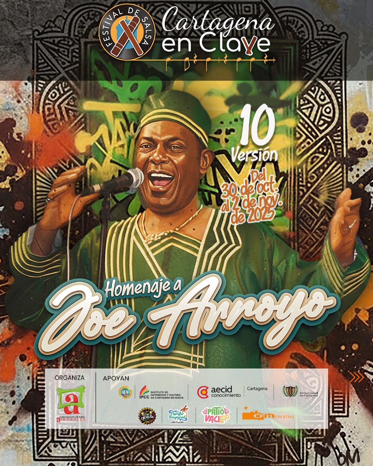 Cartagena de Indias, 22 de octubre de 2025. La Corporación Cultural Arrabales presenta la décima versión del Festival de Salsa Cartagena en Clave, que se realizará del 30 de octubre al 2 de noviembre. Este evento, durante una década ha consolidado a Cartagena como epicentro del movimiento salsero del Caribe colombiano. Este año, el Festival rinde homenaje a uno de los grandes íconos de la música y la identidad popular del país: Álvaro José “Joe” Arroyo, el rebelde del barrio, el maestro que convirtió la historia y la herencia afrocaribeña en himnos de libertad y alegría.
