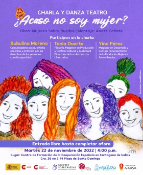 Cartagena de Indias, 18 de noviembre de 2022. Este martes 22 de noviembre, a las 4 de la tarde, en el Centro de Formación de la Cooperación Española en Cartagena de Indias se presentará la charla y danza teatro “¿Acaso no soy mujer?”, con entrada libre al público.