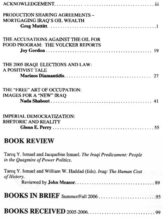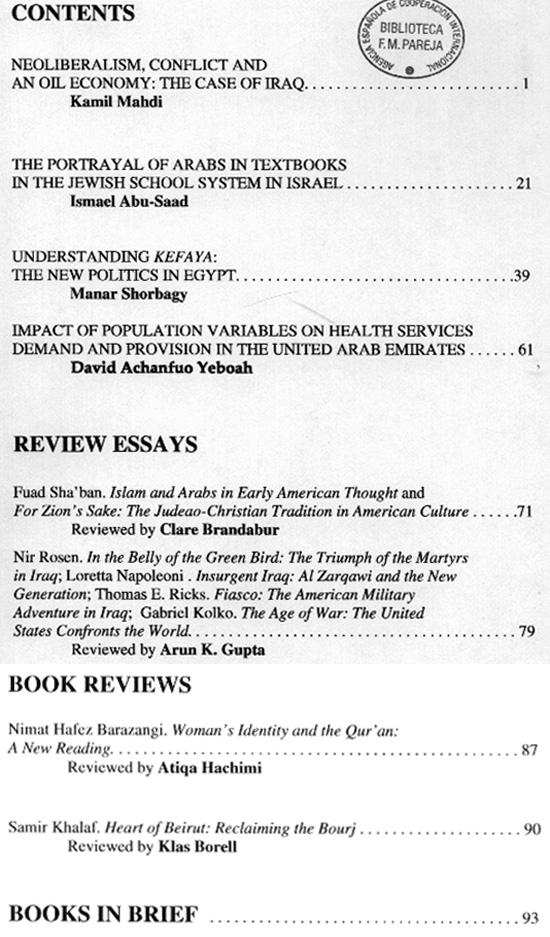 Está indexada en varias bases de datos, como Historical Abstracts, International Political Science Abstracts; America: History and Life; Political Science Abstracts; Periodica Islamica; e Index of Islamic Literature.