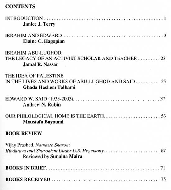 La revista Arab studies quarterly fue fundada en 1979 juntamente por el fallecido profesor Edward Said e Ibrahim Abu-Lughod que tenían la visión de que fuera una plataforma de investigación académica para contraargumentar la propaganda árabe encubierta por una jerga académica. Desde su comienzo se ha considerado como una revista de referencia que publica artículos sobre los árabes, su historia y sus instituciones sociales y políticas. La revista continúa en la tradición de sus fundadores y está comprometida en promocionar un humanismo basado en la investigación contra los discursos orientalistas dominantes en el campo de los estudios árabes e islámicos. Tiene una página web.